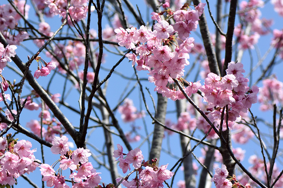 ソメイヨシノに先駆けて咲き、遠目にも鮮やかで、目立ちます。