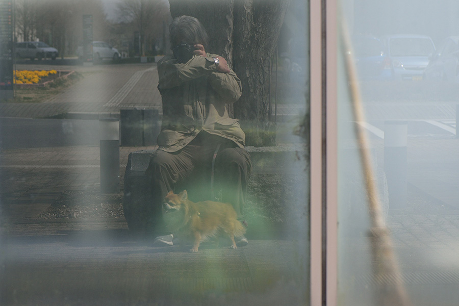 つくしと東大柏キャンパス入場ゲート裏のベンチで一休み。