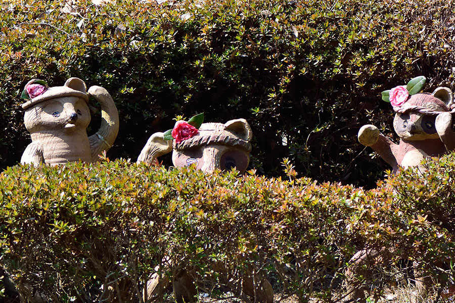Raccoon dogs (Pottery) in the back of control center of Kashiwanoha park in Kashiwa city, Chiba prefecture, Japan.