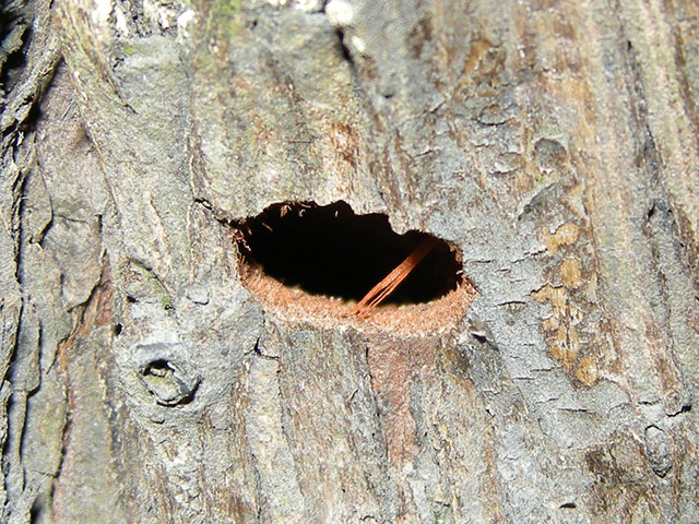 古い羽脱口が集中している、殆ど立枯れ状態のスギばかり目立ちます。
