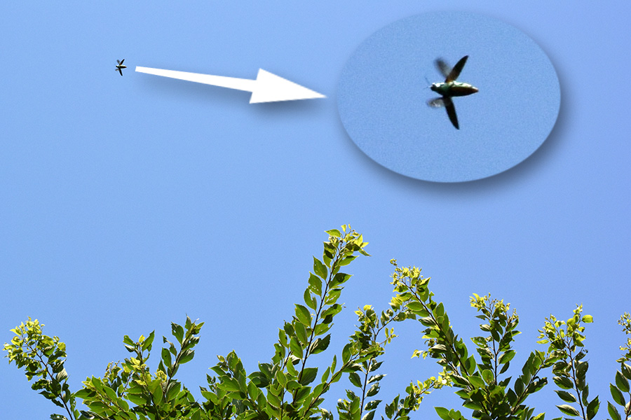 何とかお判りいただけると思いますが、ヤマトタマムシは上翅を斜め後ろに向け、後退翼のジェット機のようなシルエットで翔びます。