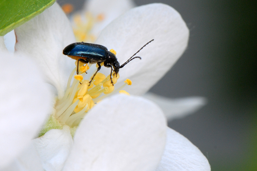 ヒメリンゴを食べるヒナルリハナカミキリ