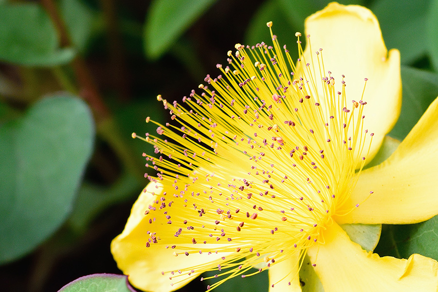 ビヨウヤナギの雄しべは柔らかく内側にカールします。