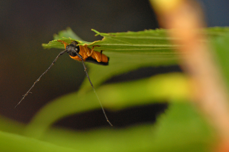 自宅でリンゴカミキリが羽脱をはじめましたが、気温も高くなったので外にあるサクラの葉にリリースしてみました。