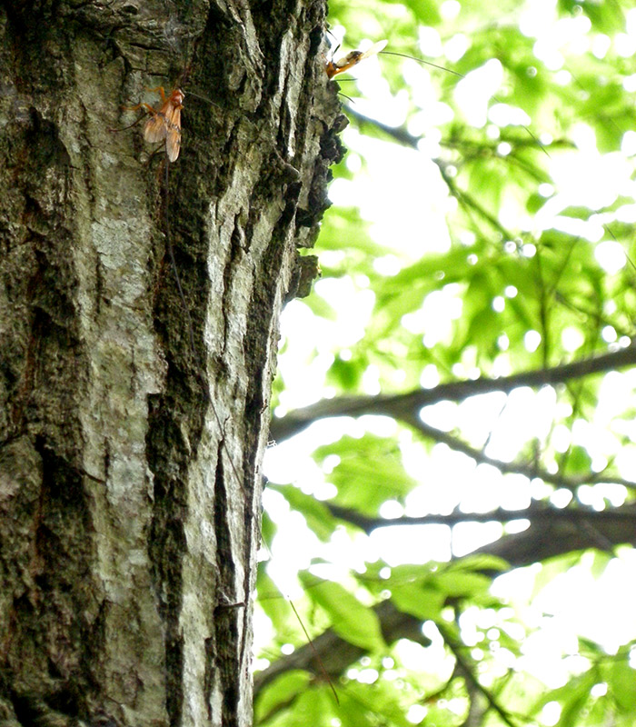 以前ネムノキでアオスジカミキリの幼虫(多分)に産卵に訪れたヒメウマノオバチを見掛けましたが、それ以来、本家ウマノオバチは憧れの虫のひとつになっていたのです。初めて見る長ぁ〜〜〜〜〜〜〜〜〜〜〜〜〜い産卵管にあらためて驚きましたが、ふわふわと舞うその姿は優雅ですらありました。