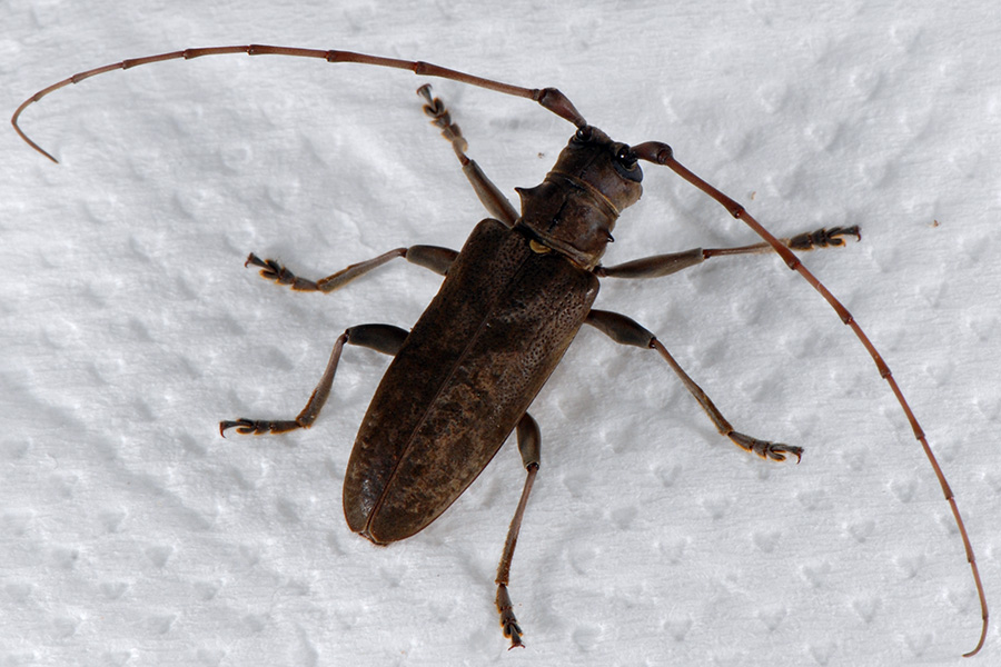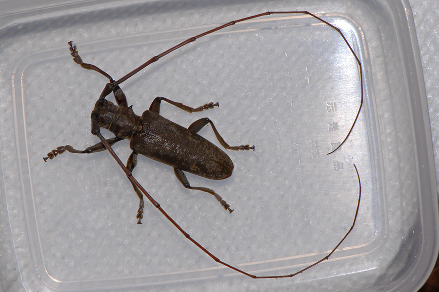 チャイロヒゲビロウドカミキリが見つかることがあります。