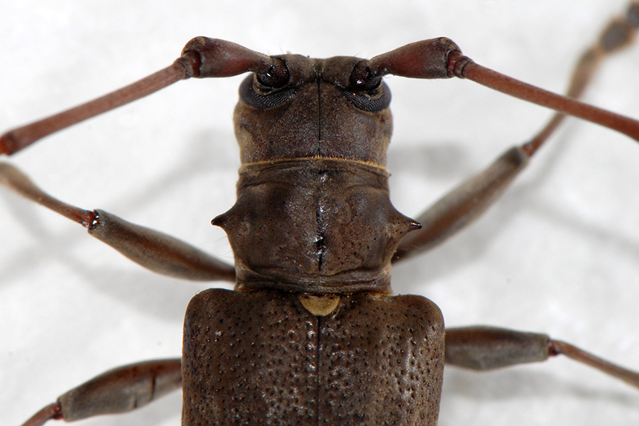 ぱっと見では、いわゆるビロウドカミキリですが、触角第1節が大きく膨らむなど、違いも確認できます。