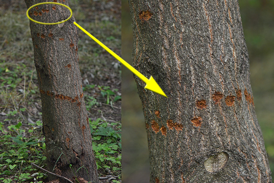 Laying marks of long-horned beetle, 'Shirosuji-Kamikiri'.