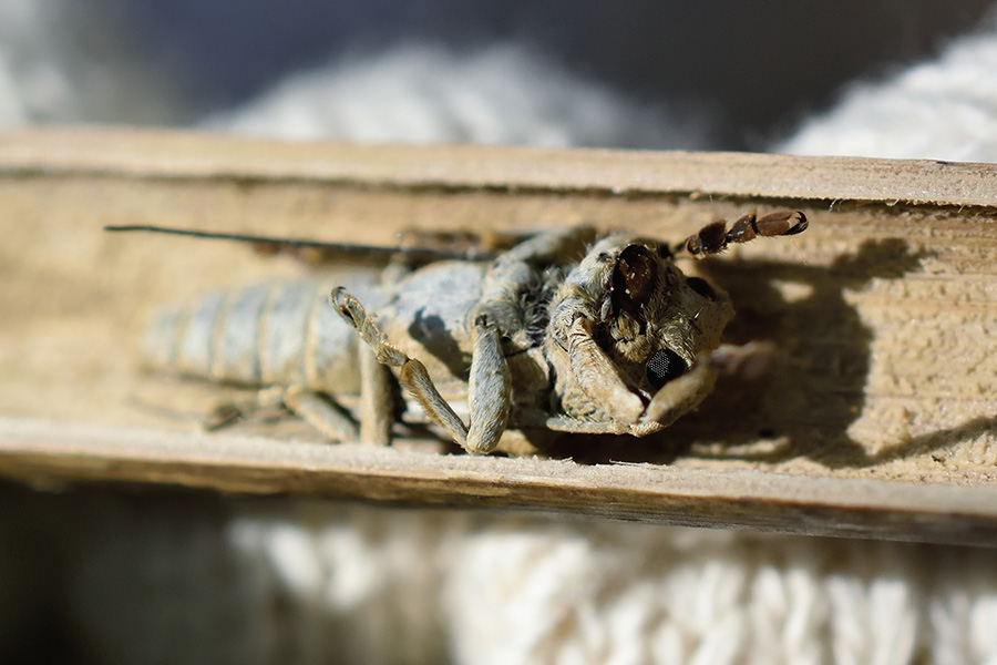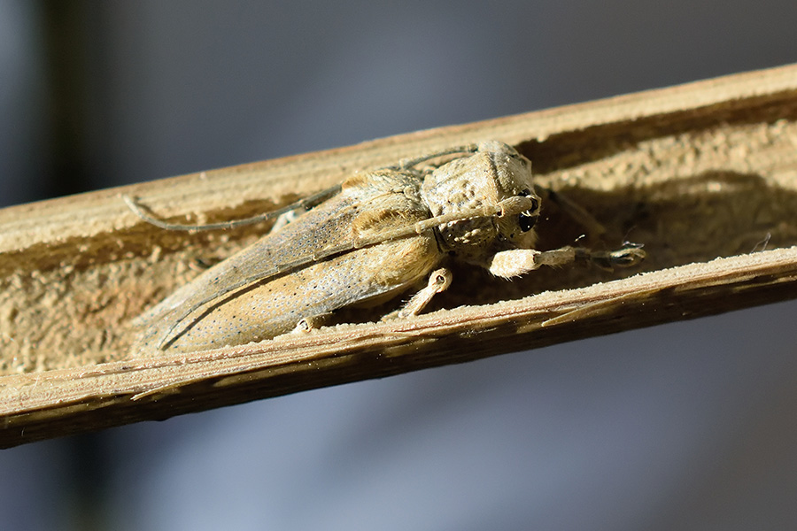 幼虫は枯れた笹や竹の空洞部分に潜んで、内側を食べて(多分)2年掛けて成虫になります。