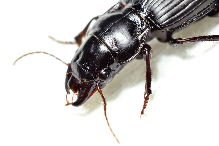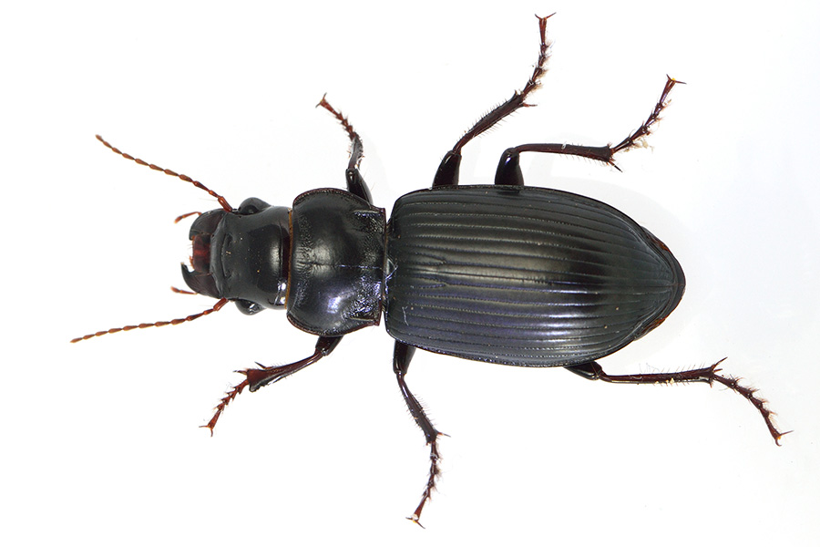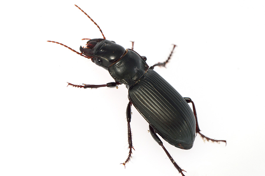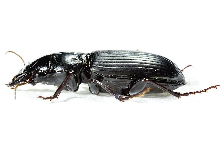 オオゴミムシは触角の付け根側、脚部跗節までほぼ全体が黒いですが、ナガマルガタとオオマルガタの前肢跗節、触角根本付近は褐色です。