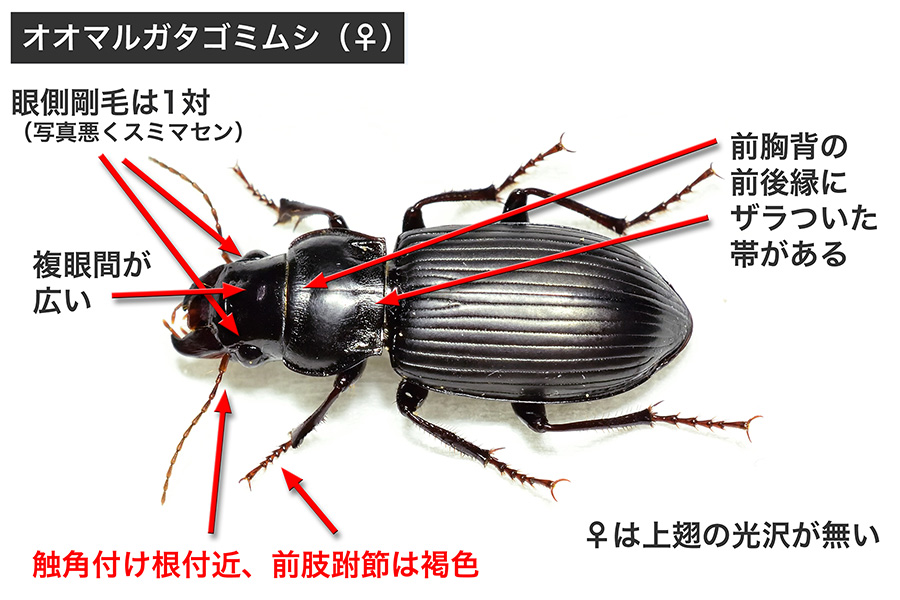 Identification points of A kind of Ground beetle’”Oo-Marugata-Gomimushi”