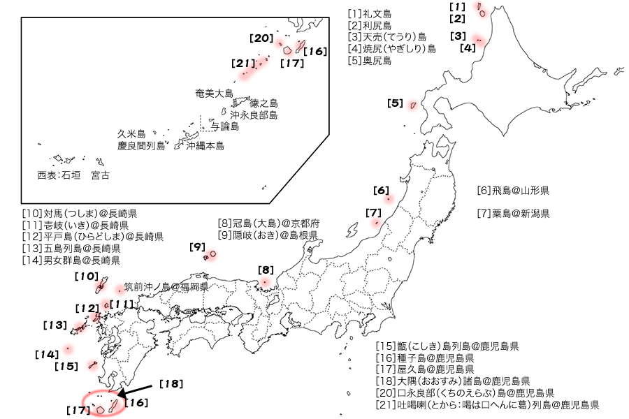 図鑑を見て、季節や分布を確認していると、日本には島が沢山