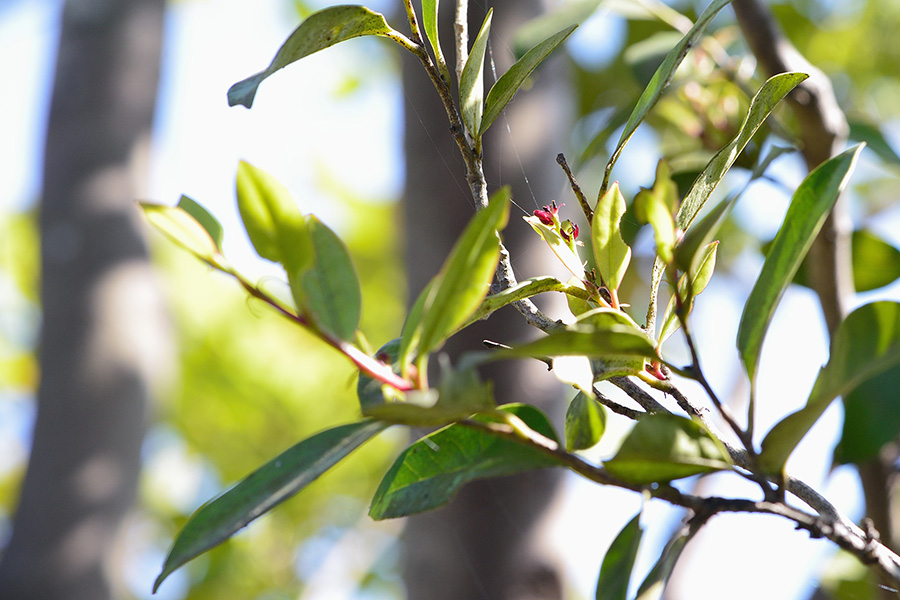 マンサク科の常緑高木で、虫癭(ちゅうえい:虫瘤(こぶ)のこと)が非常に多く見られるので、それを目安に特定できるほどです。