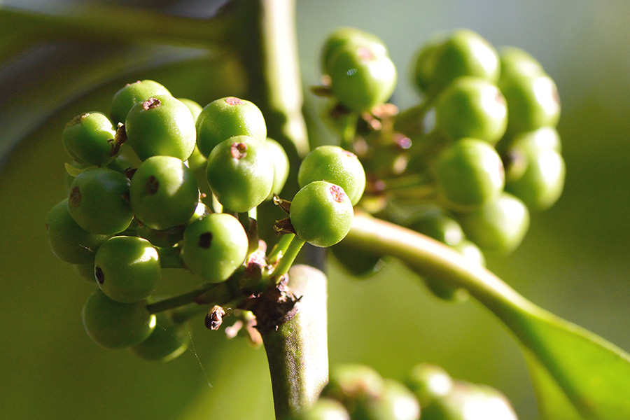 タラヨウの実がなっていました。熟成するにつれ、橙~赤と色が変わっていきます。