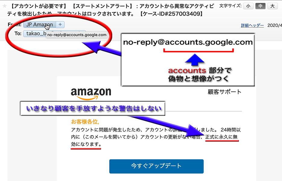 怪しい警告メールがすり抜けてくる updated on Apr. 22, 2020