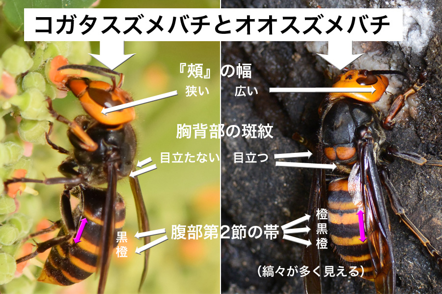 コガタスズメバチに比べてオオスズメバチは明らかに幅があります。