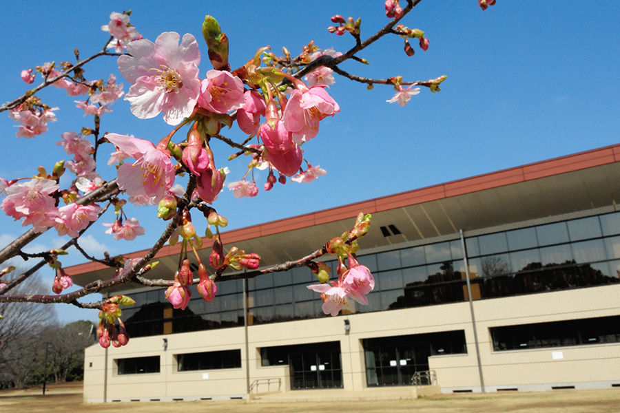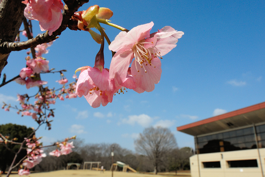 柏の葉公園の河津桜です。体育館南側の芝生広場には、両陛下が皇太子ご夫妻の頃にお手植えになられた二本があり、そこを中心にり河津桜を楽しめるように植栽されました。まだ若々しい樹ですが、しっかりと花を咲かせてくれるようになっています。