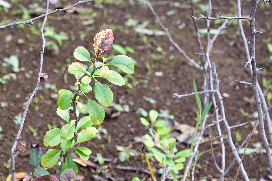 樹高1メートルに届かない落葉低木で、根本から多数が立ち上がり、遠目では繁茂した様子が草叢のように見えます。