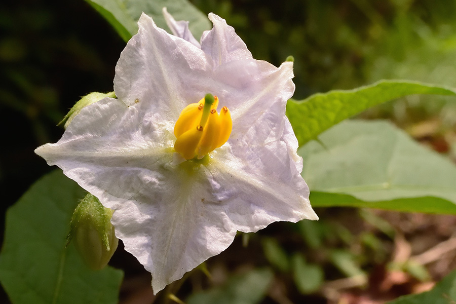 整備が終わった後の花壇の『空き地』にワルナスビ(変種のシロワルナスビと思われます)が咲いていました。