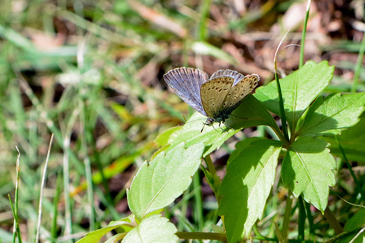 ソテツに執着がなさそうな翔び方をしていて草地に降りたので撮ってみたところ、やはりヤマトシジミでした。