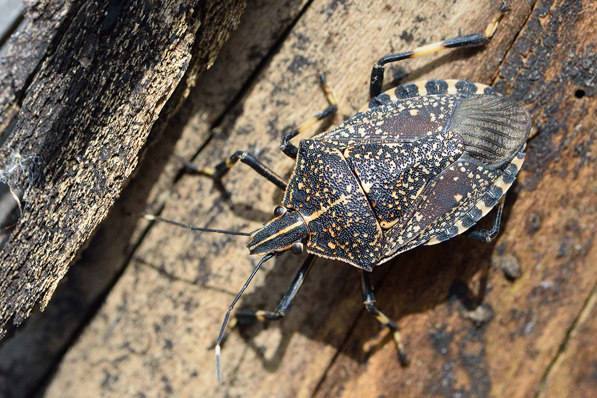 カメムシ亜科では国内最大級の南方系のカメムシで成虫越冬しますが、北上を続けています。