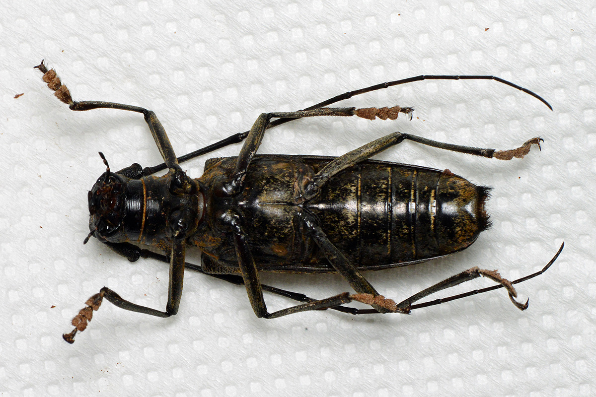 ヒゲナガカミキリ族の『族長』的存在です。日本最大と言われるシロスジカミキリ並の大型種で、特に大型の雄は、触角を含めると国内最長ではなかろうかという程迫力があります。