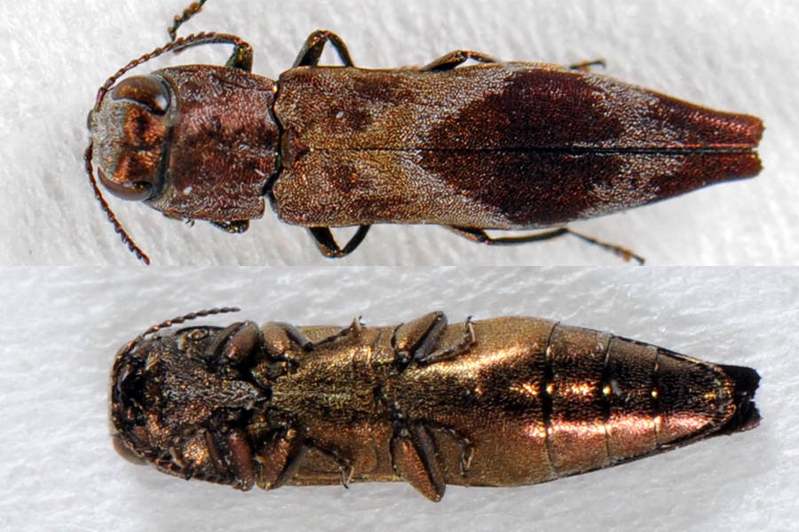 で、本日の翅の硬い虫は、僅かに咲き残ったカエデに来ていたヒメクロトラカミキリに園内の舗装路で車に轢かれていたスギカミキリ、残念ながら指の間から落ちてしまったムシクソハムシなどなどに交じって、ヒシモンナガタマムシです。