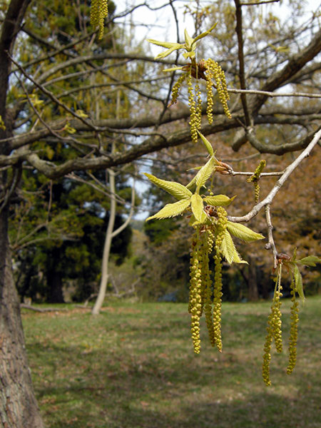 桜はほぼ散っていまして、ご覧のようにクヌギやらエノキが花を持っていました。
