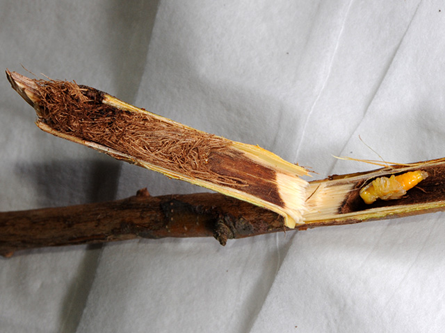 中央に坑道があり、結構大きめの木屑が詰まっています。