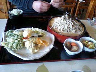 南下して3月にも休憩した竜神狭でお腹を満たします。写真は採り手の天盛り。撮り手は薯蕷(とろろ)おろし蕎麦を頼みましたが、なかなか美味しかったです。