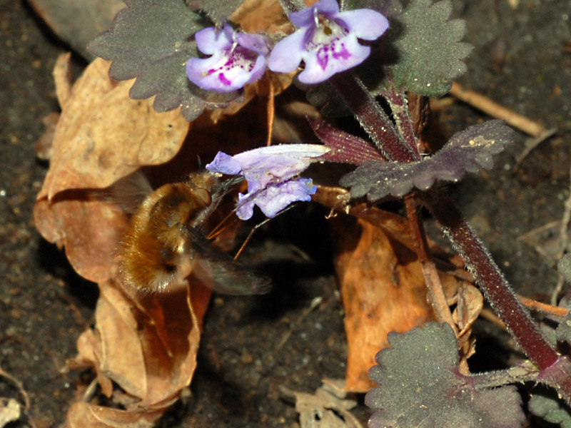 こちらはビロウドツリアブ。春を象徴する虫ですが、それと知らずに見ると、なんだか刺されそうなほど長くしっかりした口吻です。ハチドリのように花から花へ口吻を差しこんでは蜜を吸っています。