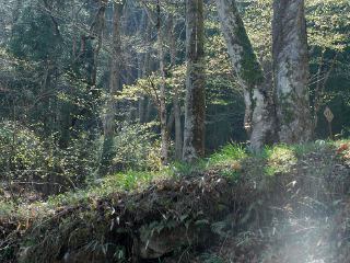 近くを見回せばまだ桜も残っていてカエデの花は咲いていません。うろちょろしていると、カエデと思しき巨大な倒木が何本か転がっています。