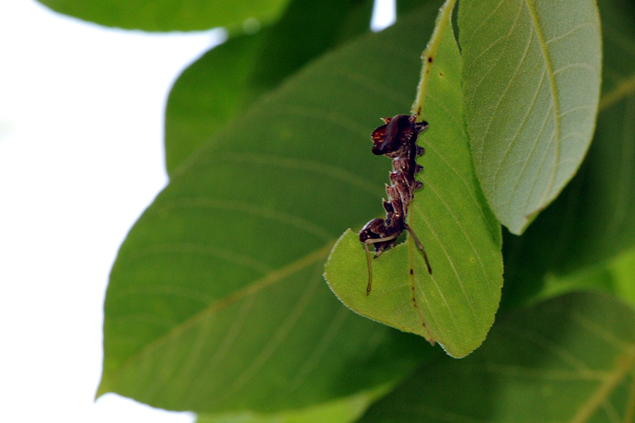 そうそう、その姿がなんとも楽しいというか、気味悪いというか、脱地球的で興味津々であります。成虫も下翅をたたんだ上翅の下から拡げるようにとまったりして、驚いたことがありますが、鱗翅類は採集し出すと標本箱が大変なので、自重しています。