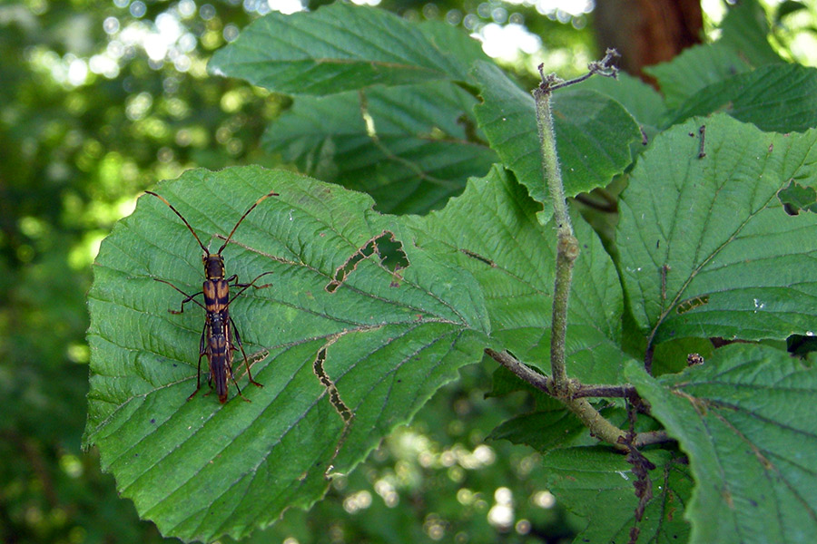 ガマズミの葉にいましたが、このガマズミと隣のリョウブにはシラホシカミキリが三々五々訪れていました。