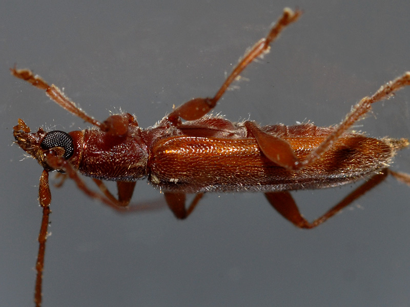 半透明の濃い鼈甲色がとても印象的なカミキリムシです。
