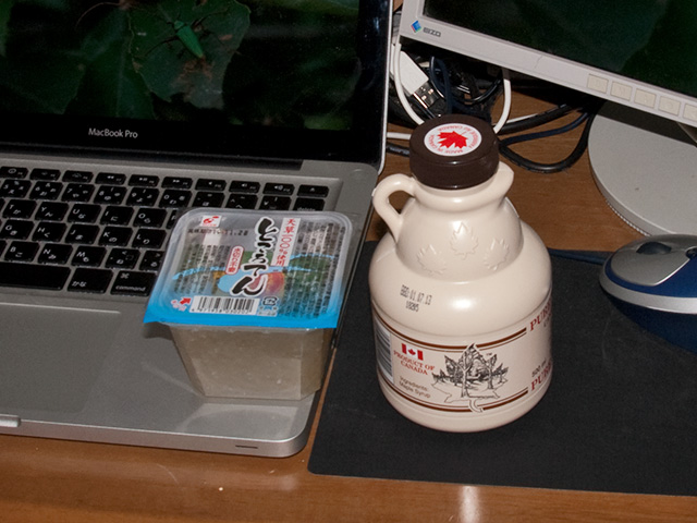 ま、いわゆるひとつの心太(ところてん)とメープルシロップです。
