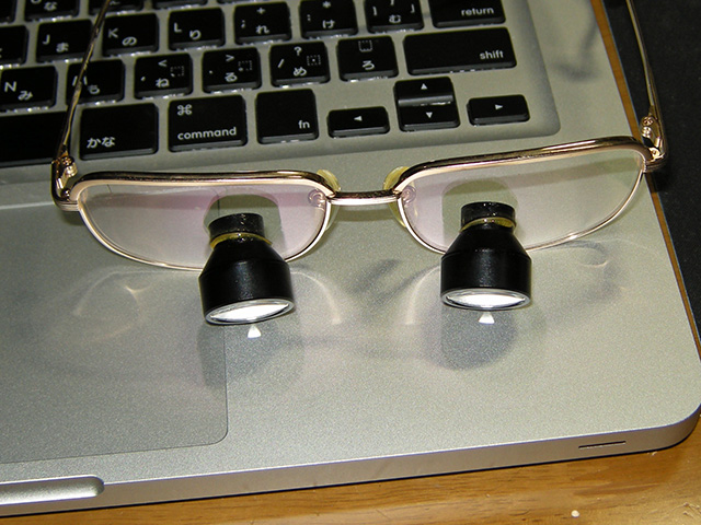 ま、テスターだったわけです。眼科のドクターの補助鏡として商品化しようとしたらしいです。オペや検査に使われるものは高価で、維持管理が厄介なので、眼底レンズ(非球面の特殊なムシメガネ)やカメラよりはるかに手軽な、ドクター個人持ち即戦力ツールとして売り込むとか言ってました。