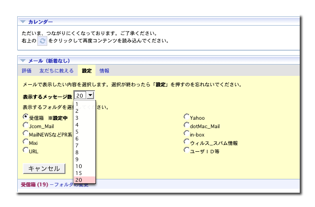 マイページでのメール標題チェックが20件にまで拡大されてましたので、