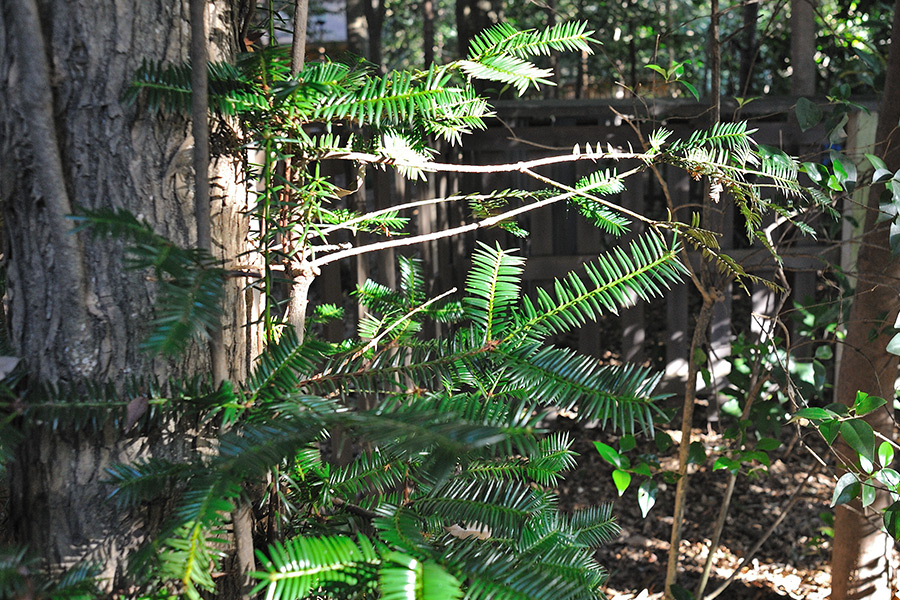 年の瀬にお参りに行くと、なるほど境内には落葉樹と常緑樹が巧い具合に