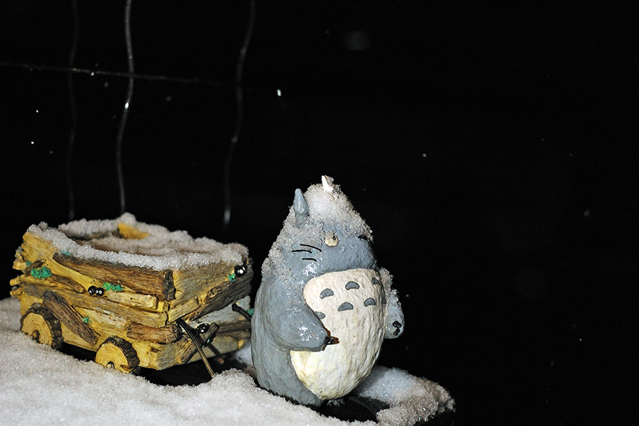 家に戻る頃には、玄関のトトロにも雪が・・・