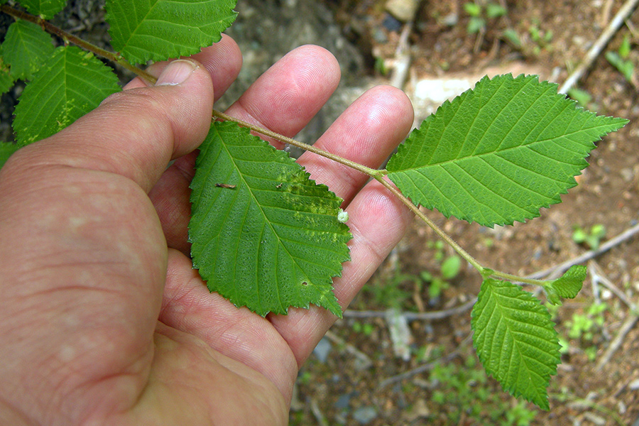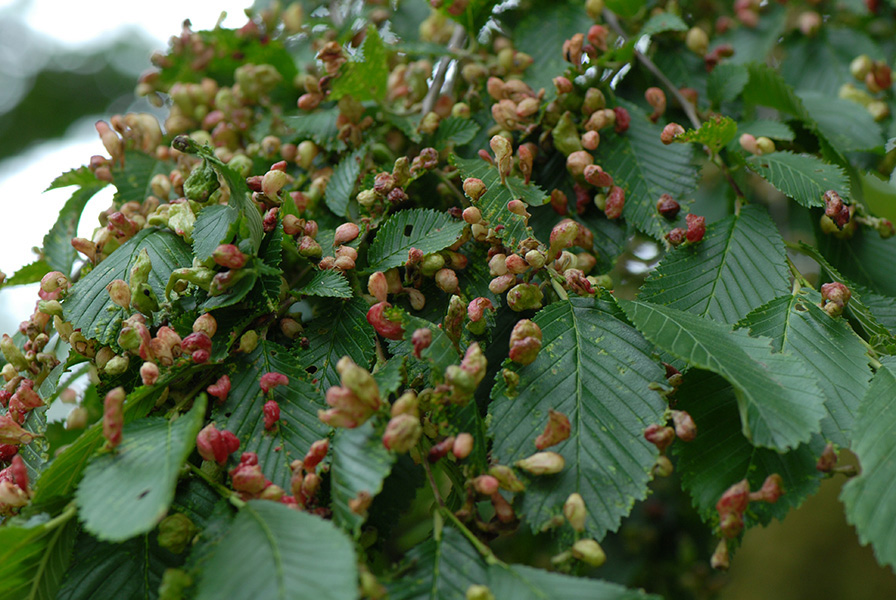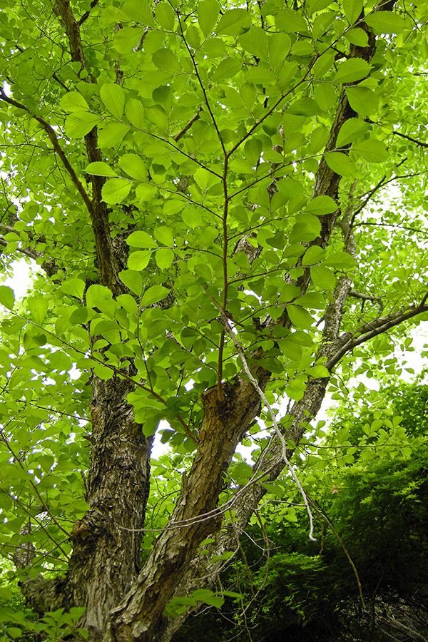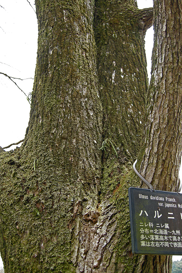 ♪ハルニレ[ニレ科ニレ属]縦に深く裂けた樹皮を持ちます。葉が虫癭(ちゅうえい:虫こぶ)だらけの大木も多く見掛けます。