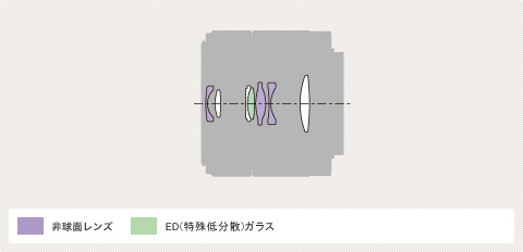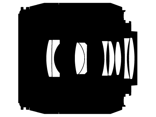 で、対照的なのはレンズ構成です。フランジバックの長いNikonはレンズが