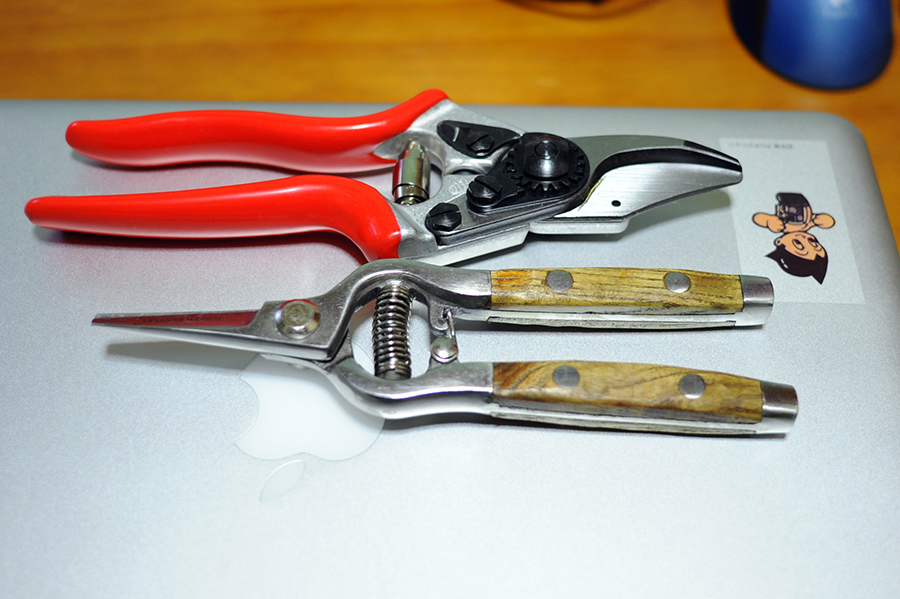 小振りな印象です。下のは英国製で、洒落た柄が好印象?。花や徒長枝