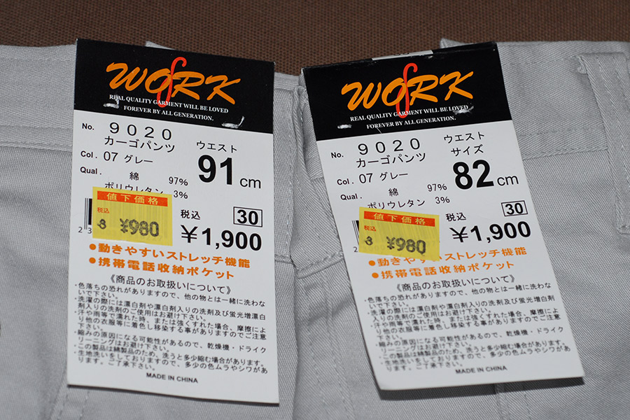 懲りもせずワークマンにのこのこ出掛けまして、買い足してきちゃいました。しかも82センチという驚異的な“細さ”のものまで。91センチは色違いでまだまだあったのに、あえて82センチという冒険サイズにしたのは、これが穿ければメタボ健診で指導が入らなくなるだろうという目標値でもあります。そうそう、件のお嬢さんスタッフと帰り際にすれ違いまして