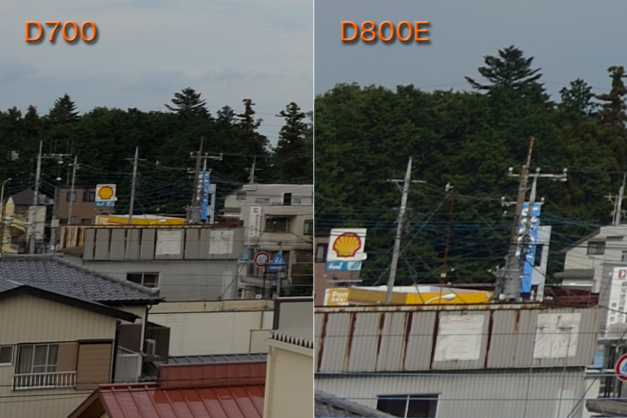 D700とD800Eで、同じ方向を同じレンズで撮ってみました。
