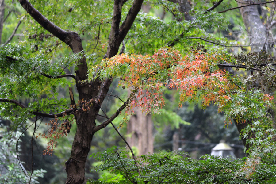 カエデの色付きはまだまだです。