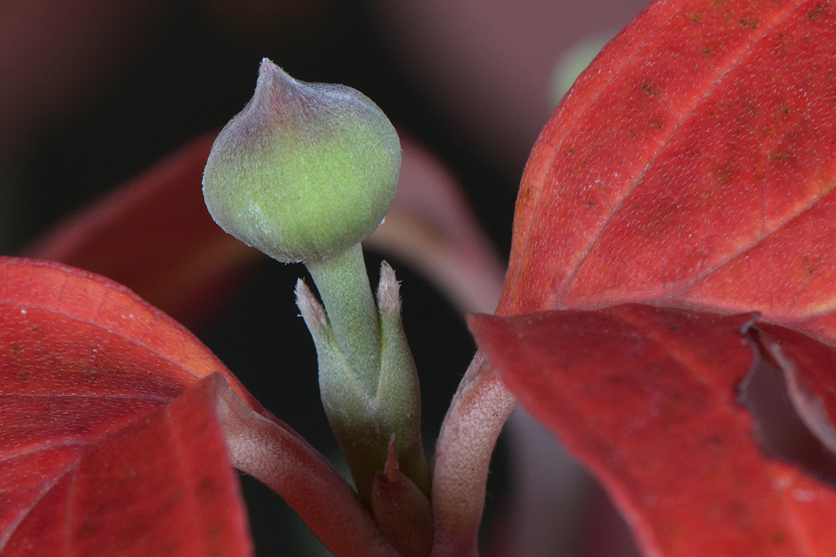 高解像度カメラでは、やってはいけないと言われるんですが、ついつい絞り込んで撮ってしまいます。生き物相手で、私くらいのレベルではあまり気にする必要も無いんじゃなかろうか、と感じつつ楽しんでます。蕾や葉裏だけでなく、疎らながら表面にも毛のあることが判ります。