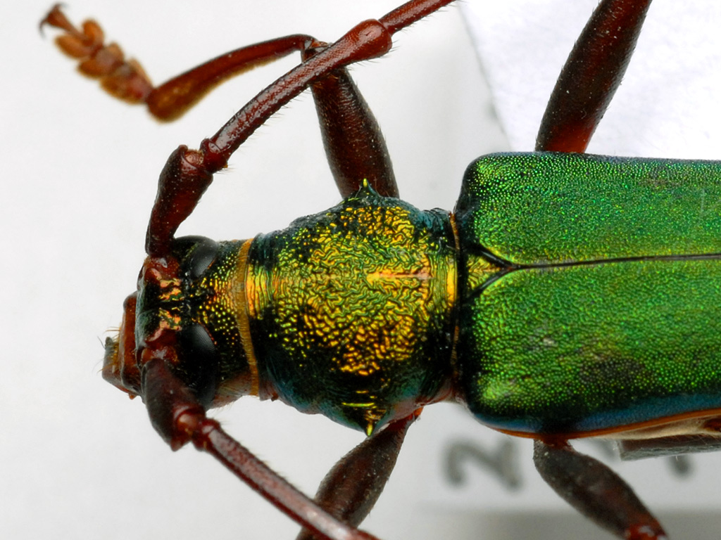 アオカミキリや少し前のルリセンチ、このアカアシオオアオカミキリと、アオモノの写真を撮り直していて、ふと『青物横丁』という駅名が頭に浮かびました。