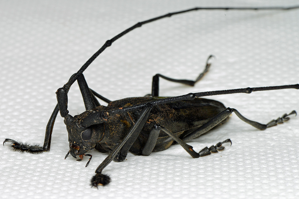 ヒゲナガカミキリ族の『族長』的存在です。日本最大と言われるシロスジカミキリ並の大型種で、特に大型の雄は、触角を含めると国内最長ではなかろうかという程迫力があります。