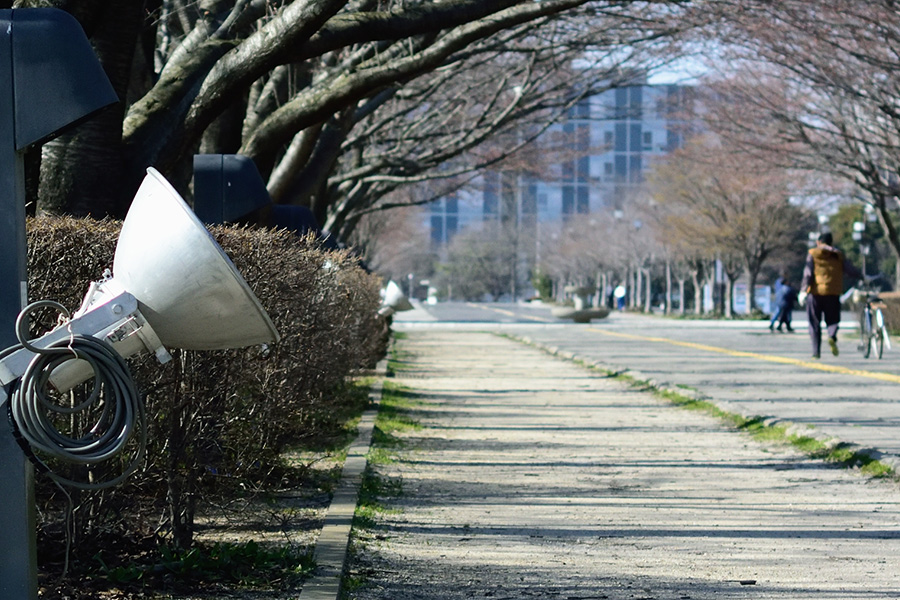 桜のシーズンに入ると、照明装置がずらりと並びます。